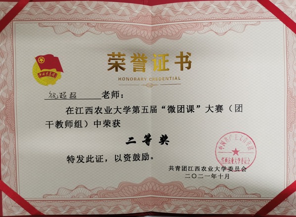 日前,由共青團江西農業大學委員會主辦,國土與資源環境學院團委承辦的江西農業大學第五屆微團課比賽結果公布,經過理論測試與團課講授兩方面的評選,我院青年教師組梁歡老師榮獲一等獎、團干教師組祝超超老師以總分第二的成績榮獲二等獎、學生組徐嘉玲團隊以總分第二的成績榮獲二等獎。