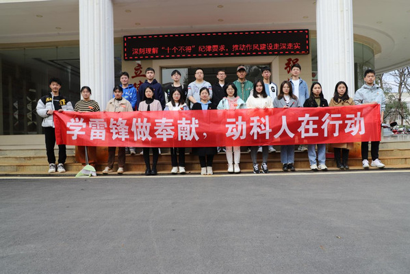 在第五十九個“學雷鋒日”來臨之際為引導全體黨員弘揚雷鋒精神,凝聚邁向新征程、奮進新時代的強大力量,3月4日,本科生一支部聯合就業升學黨小組開展“學雷鋒做奉獻,動科人在行動”主題黨日活動。