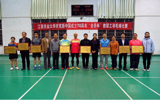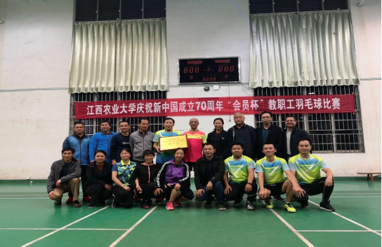 2019年10月28日,江西農業大學慶祝新中國成立70周年“會員杯”教職工羽毛球比賽在體育訓練館圓滿落幕。本次教職工羽毛球比賽歷時三天,共有22個分工會、21支代表隊、近260名教職工參加了比賽。經過小組賽、淘汰賽的激烈比拼,動科院教職工代表隊發揚拼搏精神,不畏強手,配合默契,最終獲得“會員杯”教職工羽毛球比賽團體亞軍!