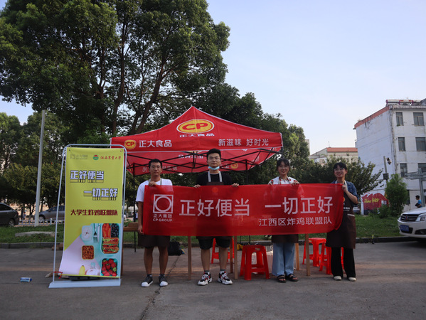 本屆“正大杯”雙創大賽以“創未來,趁現在”為主題,通過各賽區分會場展開路演,線上同步直播的形式,各參賽隊全方位、多角度展示各隊的實戰營銷方案、營銷實踐、團隊風采及未來展望等。以校企合作班“正大班”學生周久杰、李潔瓊、韓如意、熊世元組成的江西農業大學“炸雞聯盟隊”,經過前期的市場調研、線下擺點以及實戰營銷等方式,積極開發創新思維,挖掘創業潛力,充滿信心與決心,投身大賽。充分發揚創新就有潛力,創業就有動力,創造就有活力的精神,無懼挑戰,胸懷理想,盡顯鋒芒。