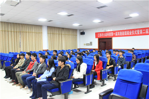 11月23日晚,我院首屆雙胞胎班結業典禮暨第二屆開班儀式于院辦201報告廳順利舉行。雙胞胎集團辦公室總經理鄧素梅,人力資源部經理唐偉民、張攀、萬嬌,院黨委副書記楊秀江,團委書記管國泉出席本次儀式,同時到場的還有第一、二屆雙胞胎班學員。