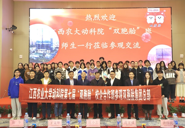 1111日,第七屆雙胞胎校企合作班的學員們來到雙胞胎集團進行參觀學習。雙胞胎集團招聘調配部部長石賀龍、集團養豬干部部部長唐偉民添加劑采購部部長鄒曉軍、飼料與服務負責人熊楊輝出席活動并做經驗分享動物科學技術學院黨委書記王義華黨委副書記陳小志、學工辦老師陳冬蔣家威,第七屆雙胞胎班成員及各學生代表參加,并現場推介畢業生應聘。