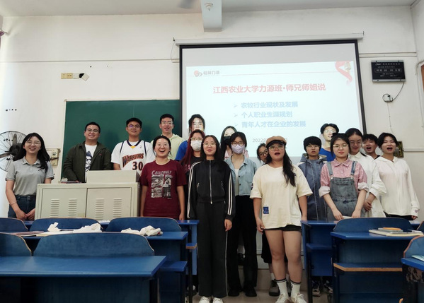 “在溝通中進步,在交流中成長”, 為深入貫徹黨的二十大精神,增強校企合作間緊密聯系,著力加強企業與學生的交流,促進學生對農牧行業進一步認知,近日,我院校企合作虛擬班“力源班”舉行“學習黨的二十大,榜樣傳幫帶,師兄師姐說”活動,桂林力源集團飼料事業部江西片區研發副總監彭承英、人力資源部招聘經理黃麗萍、人力資源部招聘專員陳怡怡出席,力源班全體學生參加活動。