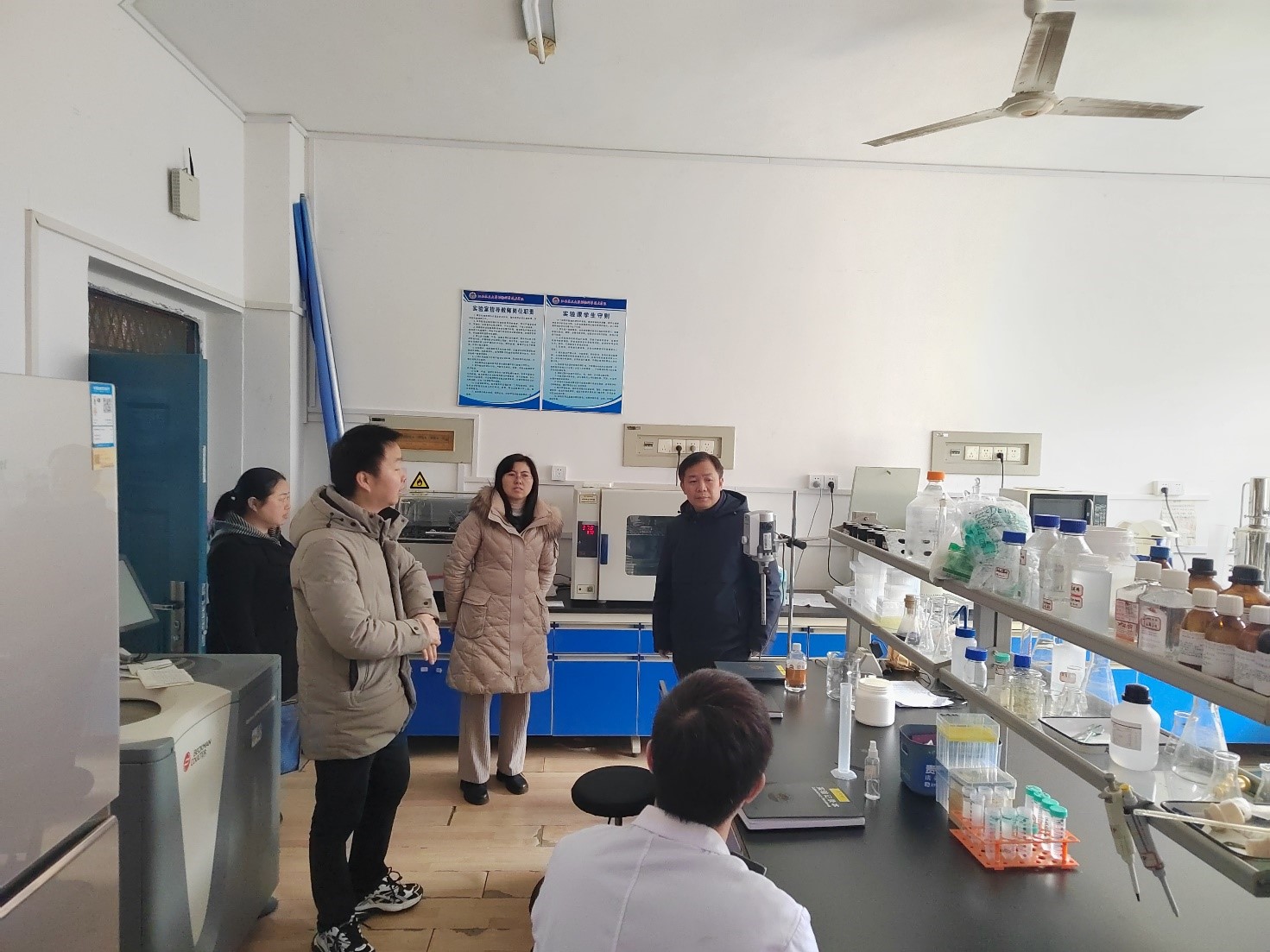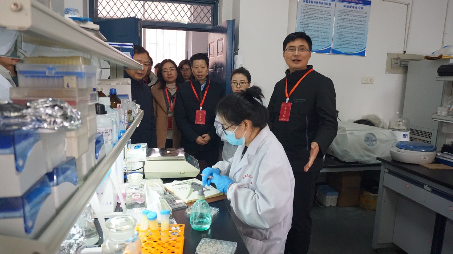 1月25日上午,校黨委委員、副校長張高亮帶領科技處處長游金明、副處長李媛、資實處處長劉娜、副處長許靜、教務處副處長李道和等一行蒞臨我院檢查實驗室安全工作,學院領導班子陪同檢查。