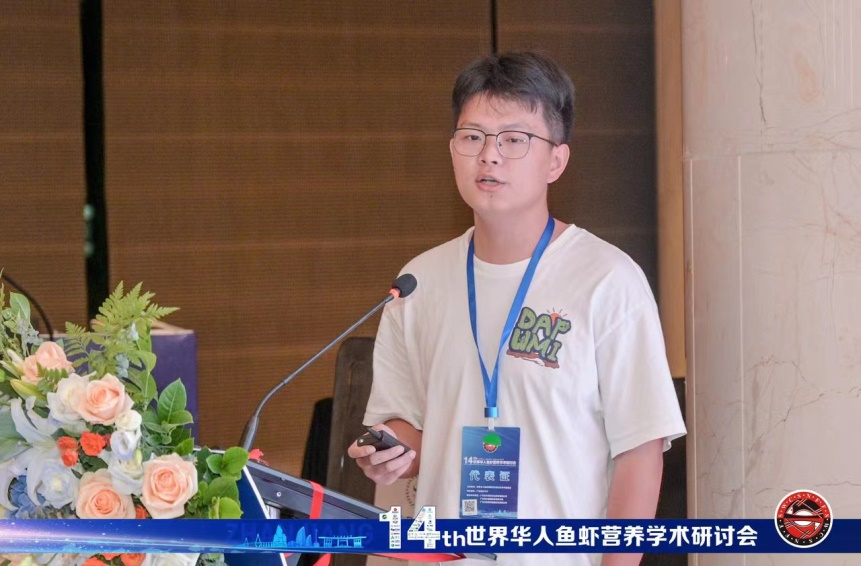 會議期間與中國海洋大學麥康森院士團隊,臺灣海洋大學蕭錫延教授團隊,華東師范大學陳立僑教授團隊等全國知名高校團隊進行了深入友好的交流,對于行業發展方向,卡脖子的技術難題,先進科研技術發展等方面進行了深入的探討,為未來加強合作打下堅實的基礎。同時,水產系余傳啟老師,研究生羅天倫同學分別在大會和研究生論壇做了口頭報告。