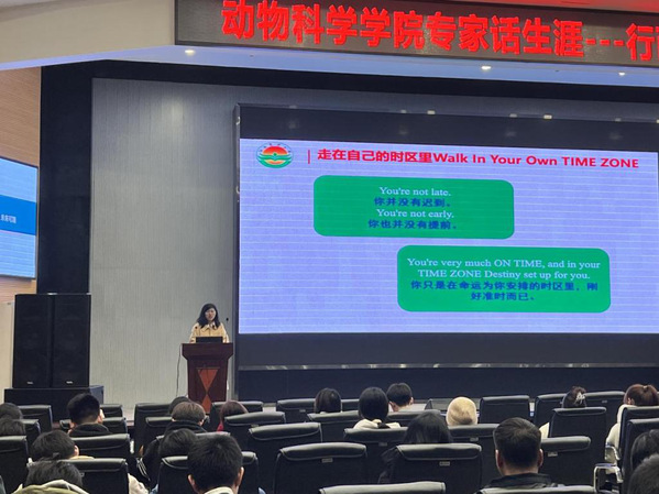 會(huì)前,彭墨應(yīng)大會(huì)主辦方長(zhǎng)江大學(xué)動(dòng)物科學(xué)學(xué)院的邀請(qǐng),參加“專家話生涯”主題講座,分享了心路歷程及對(duì)科研的感悟,增進(jìn)了兩校水產(chǎn)學(xué)科的交流和合作。