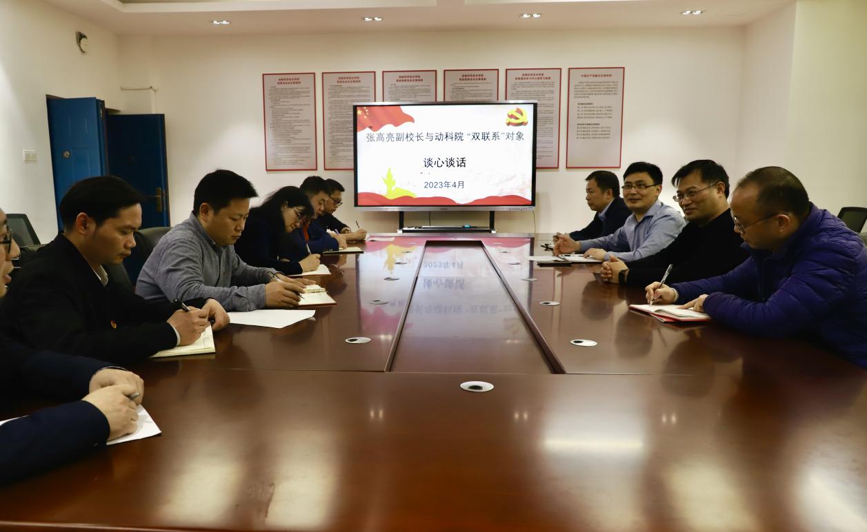 為學(xué)習(xí)宣傳貫徹黨的二十大精神,4月12日,張高亮副校長到動(dòng)物科學(xué)技術(shù)學(xué)院開展“雙聯(lián)系”活動(dòng),并圍繞學(xué)院近期重點(diǎn)工作進(jìn)行調(diào)研,與動(dòng)物醫(yī)學(xué)教工第一黨支部書記和聯(lián)系的教師黨員進(jìn)行談心談話,聽取他們在工作和生活中的困難,對(duì)學(xué)校改革發(fā)展的意見和建議。學(xué)院領(lǐng)導(dǎo)班子成員陪同。