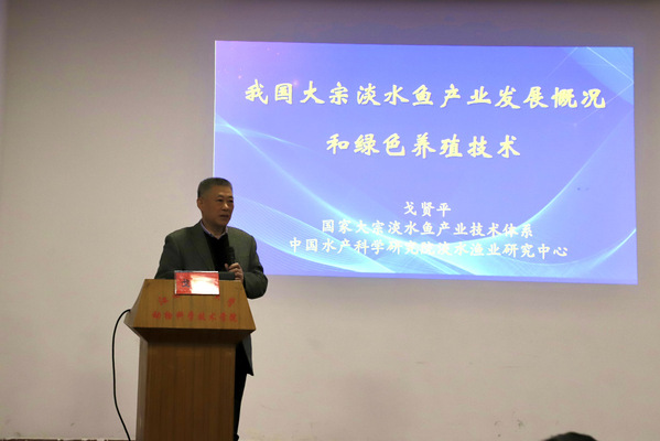 報告會上,戈賢平從大宗淡水魚的育種、大水面養殖、綠色養殖技術等方面分享了團隊在大宗淡水魚產業上的研究成果,在大宗淡水魚綠色養殖技術上提供了理論指導。