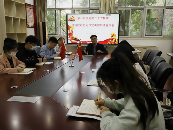 “同志們,我認(rèn)為,‘上接天氣,下接地氣’是大家給全院師生宣傳黨的二十大精神必須要抓實(shí)的兩個(gè)關(guān)鍵,才能夠讓黨的二十大精神深入人心‘冒熱氣’,宣講前要原原本本、原汁原味地讀二十大報(bào)告,要‘學(xué)懂弄通悟透’二十大精神,宣講時(shí)要做好通俗翻譯,如果宣講內(nèi)容都是理論到理論,對(duì)于學(xué)生群體而言,極有可能聽不懂,更不要說理解二十大精神的深在內(nèi)涵,要善用‘大白話’,結(jié)合二十大報(bào)告內(nèi)容,列舉身邊事,身邊人,將重要論述和理論知識(shí)轉(zhuǎn)化為學(xué)生喜歡的通俗語言……”校黨委委員、副校長張高亮在動(dòng)物科學(xué)技術(shù)學(xué)院紅色先鋒宣講團(tuán)集體備課會(huì)上與宣講團(tuán)成員熱情交流。自備課會(huì)以來,宣講團(tuán)迅速深入各班級(jí),走進(jìn)學(xué)生組織,進(jìn)入學(xué)生寢室,用唱紅歌、講故事、辦科博會(huì)等方式,開展“學(xué)習(xí)黨的二十大,培根鑄魂育新人”系列活動(dòng),讓黨的二十大精神落地生根、開花結(jié)果。