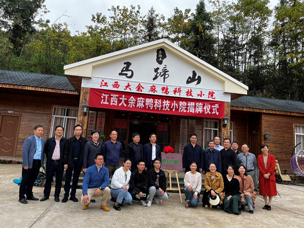 11月9日,由我院青年教授劉平牽頭搭建的“江西大余麻鴨科技小院”在大余馬蹄山生態(tài)農(nóng)業(yè)開發(fā)有限公司順利舉行了揭牌儀式。省科協(xié)黨組成員、副主席蔡震峰和大余縣常委副縣長陳亮共同為大余麻鴨科技小院揭牌,省科協(xié)院士專家服務(wù)中心副主任閔琪、省科協(xié)院士專家服務(wù)中心部長李雯、江西農(nóng)業(yè)大學(xué)科技處副處長彭劍峰等領(lǐng)導(dǎo)出席,江西省農(nóng)業(yè)科學(xué)院原副院長謝金防、我院院長胡國良、副院長郭小權(quán),相關(guān)教師及駐院研究生代表參加儀式。大余馬蹄山生態(tài)農(nóng)業(yè)開發(fā)有限公司負(fù)責(zé)人盧致峰主持儀式。