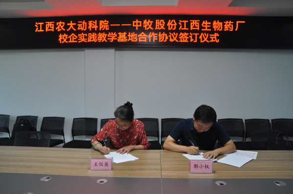 為著力推動我院動醫暨動藥人才培養及實踐教學改革,進一步拓展我院同學課外教學實踐渠道,9月22日,我院黨委書記王義華、副院長郭小權、副院長吳小波、動物藥學教研室劉寶生和劉立恒老師一行五人,赴中牧實業股份有限公司江西生物藥廠(以下簡稱中牧股份)開展校企實踐教學基地合作簽約暨訪企拓崗活動。中牧實業股份有限公司江西生物藥廠王洪海書記、副廠長崔水保等七人出席本次活動。