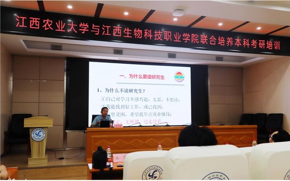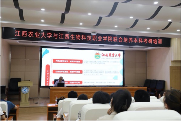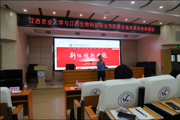 6月1日下午,院長胡國良、院黨委副書記陳小志、副院長吳小波等一行6人赴江西生物科技職業學院,開展聯合培養本科考研培訓工作。江西生物科技職業學院黨委副書記劉順華主持會議,江西生物科技職業學院有關職能部門負責人、動醫(聯培)1901班及水產(聯培)1901班全體同學參加培訓會。