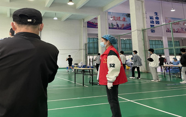 “我報名加入核酸檢測服務崗,積極參與校園抗疫志愿工作,帶頭扛起使命責任、帶頭落實防疫要求,讓黨旗在疫情防控第一線高高飄揚。”本科生第二黨支部黨員肖鸝第一時間向支部書記報名。“同學你好,核酸檢測要開始了,請佩戴好口罩盡快前往宿舍一樓進行排隊,謝謝配合!”她已連續七次參加核酸檢測引導工作,助力學院全員核酸檢測高效完成。
