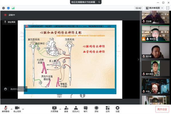 我院領(lǐng)導(dǎo)班子通過騰訊會(huì)議,全程在線聽取了劉立恒老師的《生物技術(shù)制藥》和曾慶節(jié)老師的《動(dòng)物生理學(xué)》課程。課后,學(xué)院領(lǐng)導(dǎo)對兩位老師的線上教學(xué)內(nèi)容給予了充分肯定,并對線上教學(xué)過程提出了寶貴意見。胡國良院長指出,專業(yè)基礎(chǔ)課程是學(xué)生掌握專業(yè)知識(shí)技能必修的重要課程,在培養(yǎng)學(xué)生實(shí)踐能力、提高綜合素質(zhì)方面具有重要作用,希望學(xué)生明確課程學(xué)習(xí)的重要性,同時(shí)要求教師始終抓住“以學(xué)生為主體”,加強(qiáng)師生之間線上互動(dòng)與交流。陳小志副書記指出,在疫情面前,希望師生統(tǒng)一思想,立場堅(jiān)定,在配合學(xué)校打好抗疫攻堅(jiān)戰(zhàn)的同時(shí)做好專業(yè)知識(shí)的積累,嚴(yán)于律己,認(rèn)真上好每一課。吳小波副院長提出,要深刻貫徹“停課不停教,停課不停學(xué)”,嚴(yán)明課堂紀(jì)律,建議學(xué)生全程打開攝像頭,加強(qiáng)教師對學(xué)生的教學(xué)督導(dǎo),保證教學(xué)質(zhì)量“不打折”。