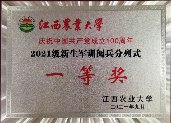 9月30日上午,江西農(nóng)業(yè)大學(xué)2021級新生開學(xué)典禮暨軍訓(xùn)總結(jié)表彰大會在學(xué)校北區(qū)田徑場隆重舉行,我院分列式方陣隊(duì)以第一名的成績榮獲2021級新生軍訓(xùn)閱兵分列式一等獎,學(xué)院榮獲2021級新生軍訓(xùn)“先進(jìn)單位”、“優(yōu)秀表演方隊(duì)”稱號。