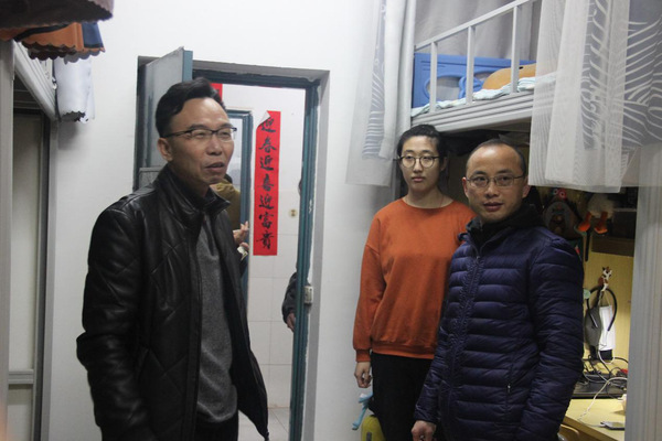 3月8日,是我院學生春季開學報到的第一天。為深入了解學院學生入學狀態,調研學生寢室安全狀況,號準學生“安全脈”,學院黨委書記張高亮、院長胡國良、黨委副書記陳小志、副院長郭小權深入學生寢室,實地了解學生的學習生活情況,帶去學院的關心和問候,團委學工辦老師陪同看望。