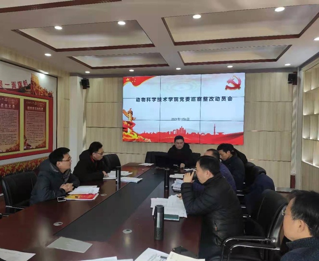 1月6日下午,學院黨委在校黨委第一巡察組巡察動科院黨委反饋會結束后,立即召開巡察整改動員會議,我院黨政班子成員、支部書記代表、各科室負責人參加了會議。學院黨委書記張高亮主持會議。