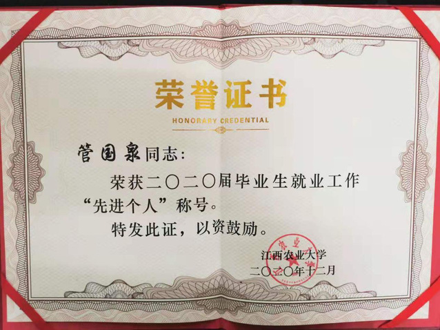 近日,江西農業大學2020屆畢業生就業創業工作總結表彰大會召開,動科院榮獲2020屆畢業生就業工作“先進集體”稱號,管國泉榮獲2020屆畢業生就業工作“先進個人”稱號。會上,院長胡國良代表就業工作先進集體作典型發言。