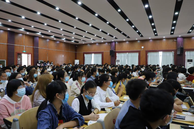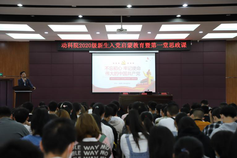 張高亮從“中國(guó)共產(chǎn)黨的簡(jiǎn)要?dú)v程”、“為什么要加入中國(guó)共產(chǎn)黨”、“大學(xué)生在行動(dòng)上入黨的要求”、“個(gè)人如何結(jié)合實(shí)際向黨組織靠攏”四個(gè)方面為新生上了一堂深入淺出、生動(dòng)活潑的思政課。他強(qiáng)調(diào),當(dāng)代大學(xué)生是中國(guó)特色社會(huì)主義新一代的接班人,是全面建成小康社會(huì)、推進(jìn)社會(huì)主義現(xiàn)代化事業(yè)的主力軍和后備力量,肩負(fù)著維護(hù)社會(huì)和諧和振興中華的重任,民族的希望,是祖國(guó)的未來(lái)。他對(duì)同學(xué)們提出四點(diǎn)希望:一是立德修身,做到格物致知、修身明道;二是刻苦讀書,探求真學(xué)問(wèn)、練好真本領(lǐng);三是廣泛涉獵,實(shí)現(xiàn)德智體美全面發(fā)展;四是自我管理,聚焦成長(zhǎng)成才、珍惜美好年華。張書記最后指出,同學(xué)們要不斷提升政治修養(yǎng),積極學(xué)習(xí)黨的章程,提高思想覺悟,深刻理解習(xí)近平新時(shí)代中國(guó)特色社會(huì)主義思想,要樹牢“四個(gè)意識(shí)”、堅(jiān)定“四個(gè)自信”、堅(jiān)決做到“兩個(gè)維護(hù)”,把學(xué)習(xí)當(dāng)作愛好,勤奮當(dāng)作習(xí)慣,做“德智體美勞”全面發(fā)展的社會(huì)主義建設(shè)者和可靠接班人。