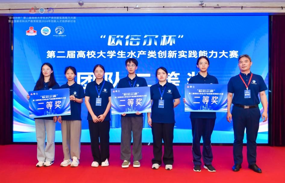 第二屆“歐倍爾杯”高校大學生水產類創新實踐能力大賽決賽于2024年9月28日-29日在中國海洋大學舉行,我院本科生隊伍 “江豚守衛隊”首次參賽,榮獲全國二等獎!