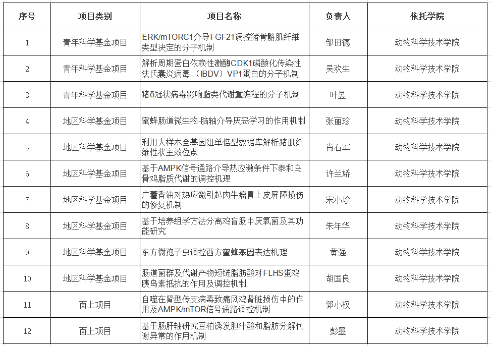 附:江西農業大學動物科學技術學院2020年度國家自然科學基金資助名單