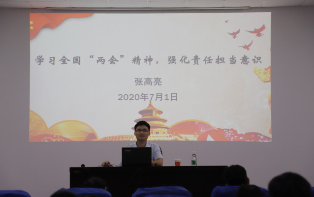 授課中,張高亮首先從加深對黨的認識、弘揚優良傳統、凝聚廣大黨員三方面講述建黨節的重要意義。隨后,他還詳細解讀了全國兩會精神與政府工作報告,尤其是向黨員認真分析當下的疫情形勢與國際局勢,揭示了關鍵時期我黨科學地推出一系列重要舉措,教育引導大家從國內外抗擊疫情的實踐對比中,不斷增強“四個意識”、堅定“四個自信”、做到“兩個維護”。張高亮還勉勵研究生黨員們要牢記初心使命,強化責任擔當意識;充分發揮青年黨員思維活躍的優勢,敢于創新;不負青春,砥礪奮斗!