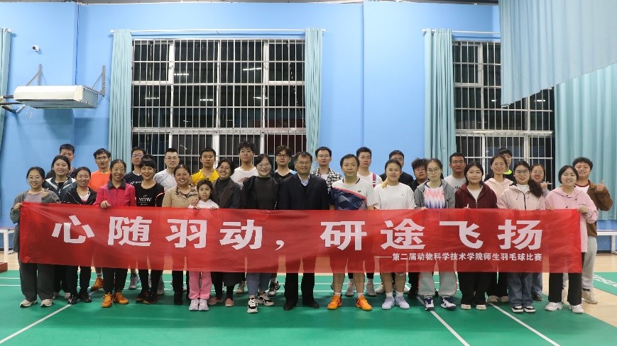 11月16日至11月17日,動科院在校羽毛球館隆重舉行了“心隨羽動,研途飛揚”研究生師生聯誼羽毛球比賽。學院黨委書記王義華老師、院長郭小權老師、黨委副書記宋婧老師、副院長吳小波老師、副院長彭墨老師、院工會主席李琳老師和學工辦主任陳冬老師蒞臨現場觀看比賽并為獲獎選手頒獎。