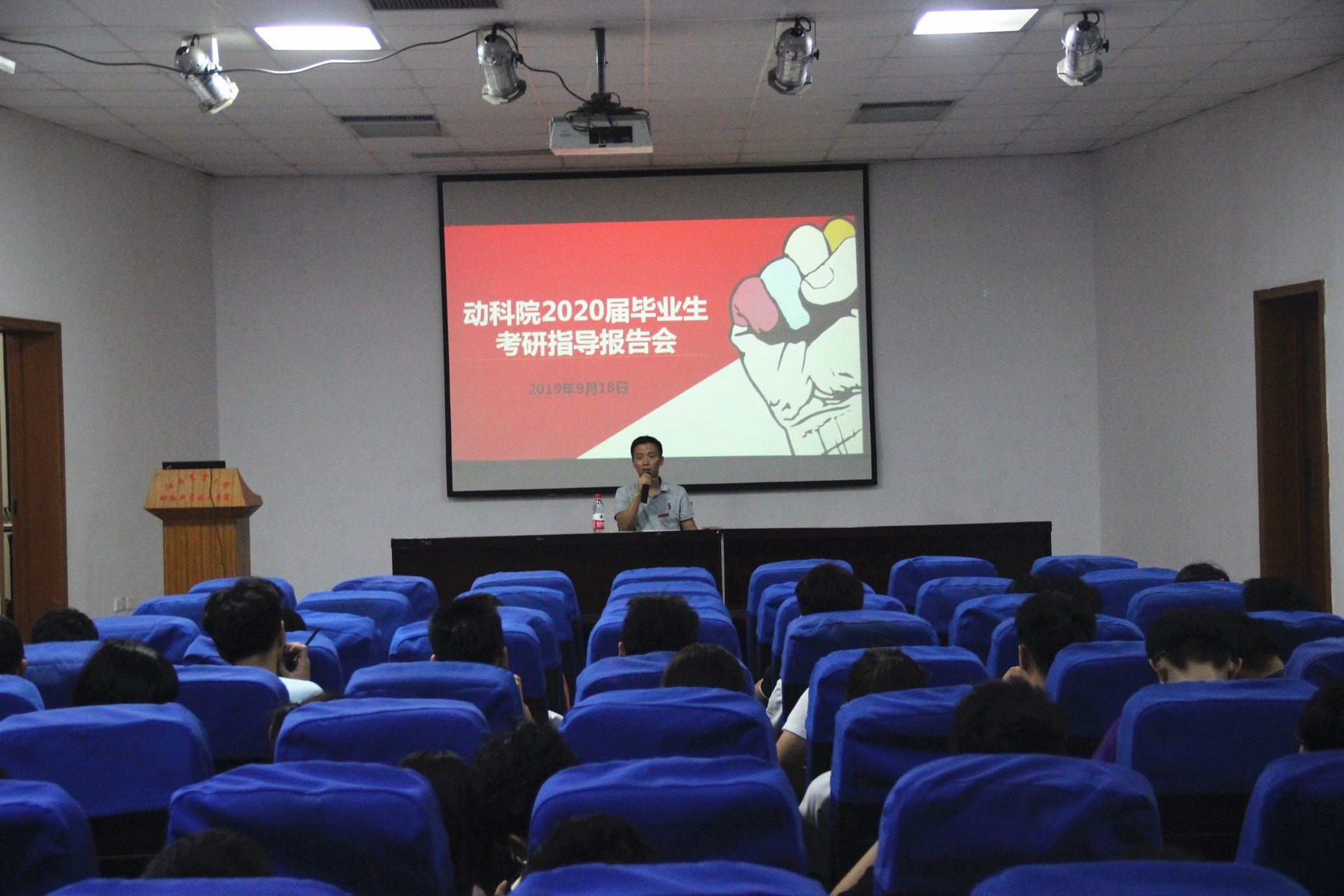 為助力2020屆畢業(yè)生考研,進(jìn)一步做好考研指導(dǎo),9月18日,動(dòng)物科學(xué)技術(shù)學(xué)院邀請(qǐng)招生就業(yè)處副處長(zhǎng)陳家興為2020屆考研學(xué)生做考研指導(dǎo)報(bào)告會(huì),報(bào)告會(huì)由動(dòng)科院團(tuán)委書記管國(guó)泉主持,有近140名學(xué)生參加。
