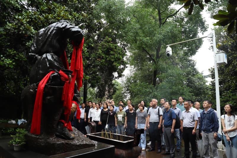 在紅軍墳與紅軍軍醫雕像前,教職工黨員上了一堂感人肺腑的黨性教育課。龍思泉是一名紅軍軍醫,為救治遵義百姓,錯過與部隊轉移的時機而犧牲,年僅18歲。為了紀念這位疾病救人的紅軍軍醫,更為了懷念造福窮苦百姓的紅軍,紅軍墳被當地百姓自發地守護著,并且當作菩薩來祭拜。紅軍墳寄托了遵義人民對紅軍的尊敬和愛戴,成為軍民魚水情深的一個象征。