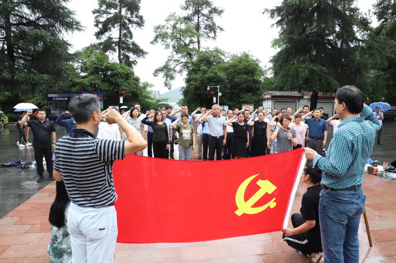 在向紅軍烈士敬獻花籃后,一場鏗鏘有力的重溫入黨誓詞活動開展。“我志愿加入中國共產黨……”教職工黨員面對紅軍烈士紀念碑莊嚴宣誓。