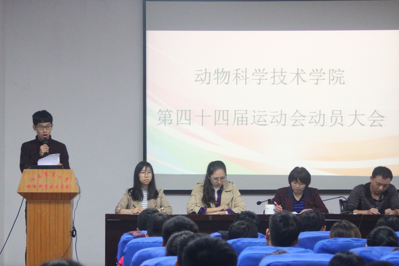 金秋時節,丹桂飄香,一年一度的校運會即將來臨。10月15日中午,我院第四十四屆校運會動員大會于院辦201報告廳順利召開。我院黨委副書記廖述香老師、團委書記管國泉老師及學工辦所有老師出席大會,全體運動員及后勤保障工作人員到場。