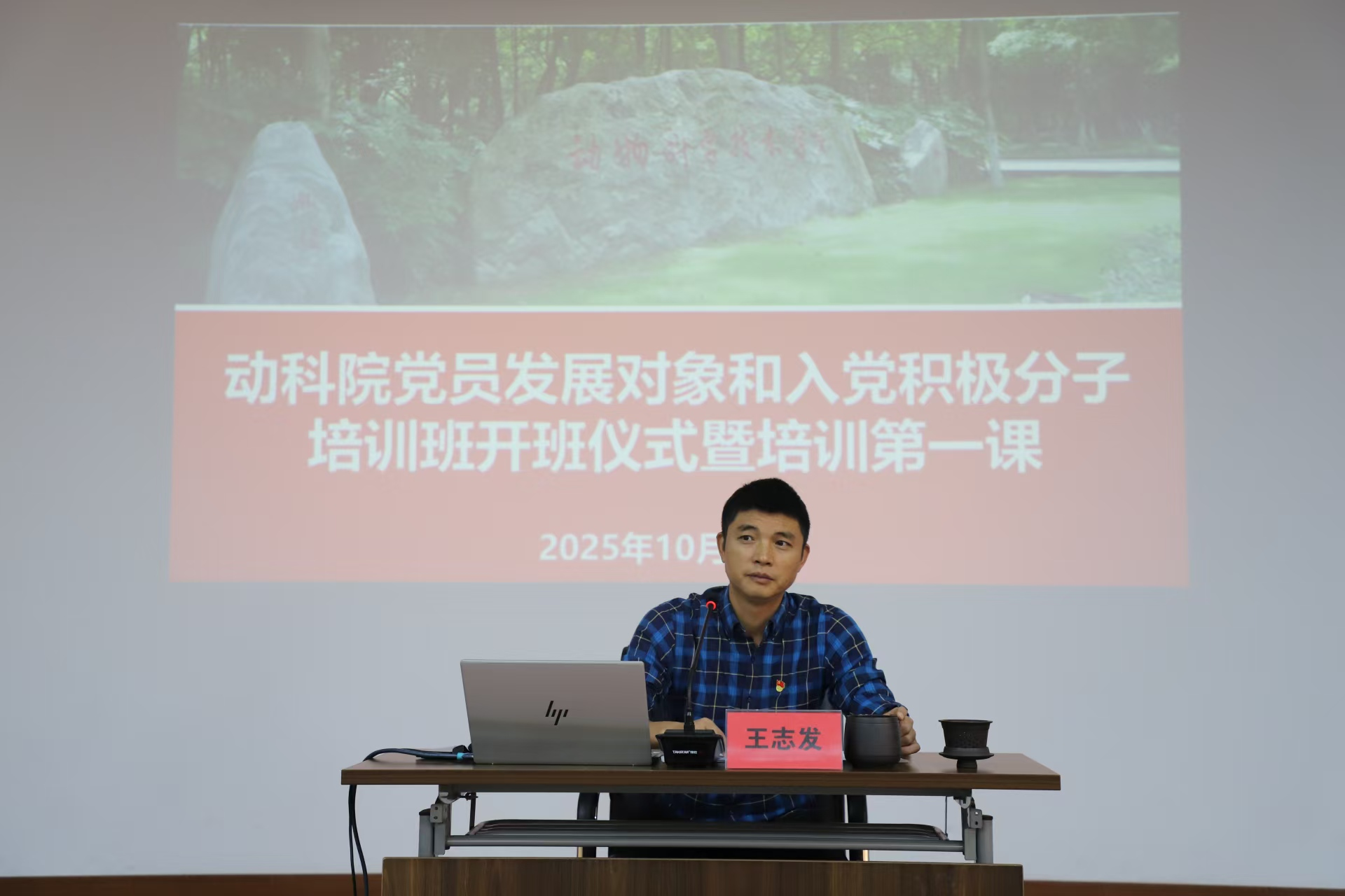 為從源頭上確保黨員發(fā)展質(zhì)量,筑牢入黨積極分子和發(fā)展對(duì)象的思想根基,10月14日下午,動(dòng)物科學(xué)技術(shù)學(xué)院在學(xué)院201會(huì)議室舉行2025年下半年黨員發(fā)展對(duì)象和入黨積極分子培訓(xùn)班開班式暨培訓(xùn)第一課。學(xué)院黨委書記王志發(fā)出席開班式,并以“堅(jiān)定理想信念、端正入黨動(dòng)機(jī)”為題,為學(xué)院全體黨員發(fā)展對(duì)象和入黨積極分子講授培訓(xùn)第一課。