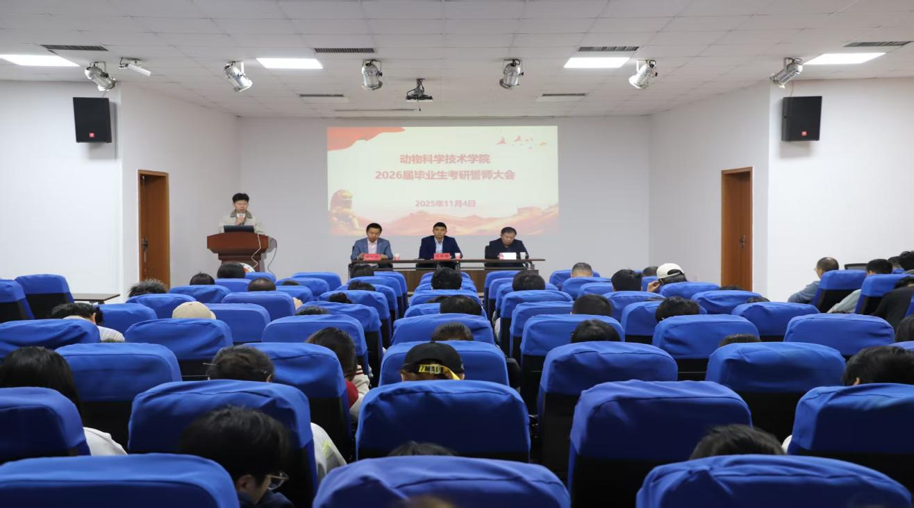 為進一步堅定考研學子備考信心、凝聚奮進力量,引導青年學子將個人理想融入國家畜牧行業發展大局,11月4日下午,我院于院辦201報告廳舉行2026屆考研誓師大會。院黨委書記王志發、院長郭小權出席會議,2026屆畢業班班主任、全體輔導員及全體考研學子參會,副院長吳小波主持會議。