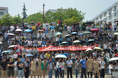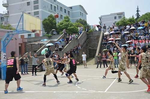 4月28日,南區籃球場激情似火,我院男籃與軟件院男籃四強爭奪戰在此拉開。院黨委副書記楊秀江及院學工辦老師楊靜親臨現場加油。