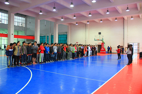 年輕的我們自信飛揚,青春的氣息如同初生的朝陽。開幕式在各參賽隊伍整齊劃一、斗志昂揚的入場中拉開了序幕。來自上海恒豐強江西區經理鄒洪林講話中,他介紹了公司情況以及籃球運動對大學生學習生活的意義。在隨后楊書記發表的講話中,他表示我們要發揮奧林匹克精神,賽出水平,賽出風格,避免賽場上的不文明現象并預祝此次比賽取得圓滿成功。參賽運動員代表艾偉誠向大家傳達出運動員堅決聽從指揮、服從裁判,秉承友誼第一、比賽第二、重在參與的理念。最后,裁判員代表鄧紹山進行了“必定嚴肅認真,公正裁決,確保比賽公平、公正順利進行”的精彩宣誓。在青春激昂的歌曲《逆戰》后,我院男籃隊員們為大家獻上了一場精彩的表演賽。