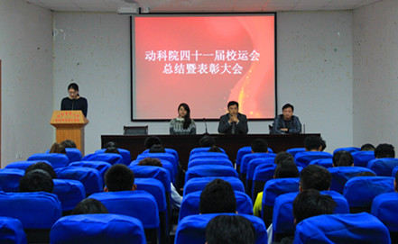 伴隨著《超越夢想》的歌聲,大會在運動會點滴感動的回憶中拉開序幕。主持人開場表達了對運動員、裁判員、后勤人員的衷心感謝。緊接著優秀運動員代表胡玲紅和張金龍、后勤代表胡婷婷上臺發表講話,講述“壓力與拼搏,幫助與超越”的重要性,并對運動員不畏傷痛堅持參賽的運動精神予以肯定。在激動人心的頒獎儀式上,運動健兒們的優異成績讓我們再次感受到我院的頑強作風和“勇于拼搏,堅持不懈”的動科精神。隨后,楊書記就此次運動會發表了講話,書記首先肯定了我們的付出,同時講述了運動會中收獲的感動、自信和團隊意識,這種精神值得鼓勵和學習。希望來年的運動會我們能再接再厲,繼續拼搏。