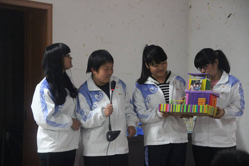 此次比賽共有14個寢室的優(yōu)秀成果從眾多參賽作品中脫穎而出,將通過微信平臺投票、PPT展示及寢室裝飾三方面結(jié)果進(jìn)行綜合評比。比賽過程中,同學(xué)們以寢室為單位相繼上臺進(jìn)行PPT風(fēng)采展示,并為大家詳細(xì)地介紹了參賽作品的制作理念及寓意。參賽作品中大多融入了變廢為寶的環(huán)保理念,其中不乏用筷子及衣架等物品組裝起來的DIY作品。各組PPT講解時也是風(fēng)趣幽默,不時博得觀眾的陣陣掌聲。經(jīng)過激烈的角逐,最終1棟501寢室《逗神家具》和8棟410寢室《鈴韻》憑借其生動詼諧的講解和獨(dú)具匠心的設(shè)計(jì)理念獲得本次大賽一等獎。