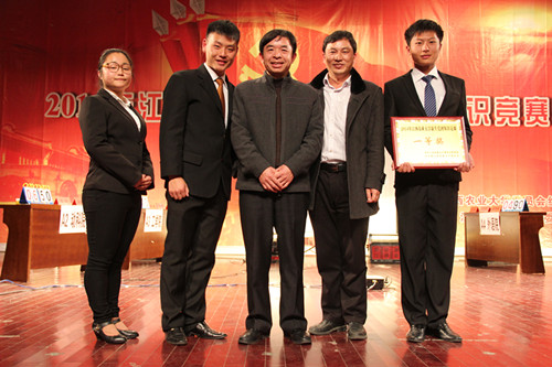 此次黨團知識競賽決賽包括風采展示和知識競答兩個部分。在風采展示環(huán)節(jié)上,我院獨具一格的《三句半》表演先聲奪人,令人眼前一亮。夏濤、肖艷宇和張路捷三位選手各具特色的表現(xiàn)博得了現(xiàn)場觀眾的陣陣掌聲。第二部分知識競答分為智在必答,爭分奪秒,險中求勝三個環(huán)節(jié)。我院選手憑借著從容不迫的心態(tài),敏捷的反應(yīng)能力和豐富的黨團知識,一路過關(guān)斬將,遙遙領(lǐng)先,所答之題絕無錯漏,最終以絕對優(yōu)勢摘得本場比賽冠軍。