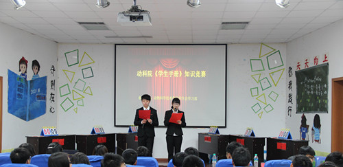 為維護教育教學秩序,加強學風建設,幫助廣大新生深入了解校紀校規。12月16日晚,“守則在心,你我踐行”《學生手冊》知識競賽在院辦201報告廳順利舉行。院黨委副書記楊秀江和學工辦老師楊靜蒞臨比賽現場,同時校學生會主席、校學習部部長及各兄弟院系學習部部長,我院團學委員們以及部分新生一同觀看了比賽。