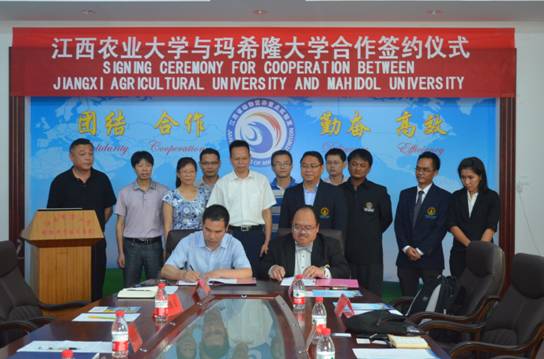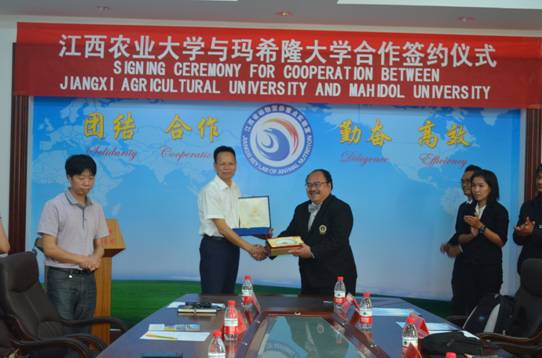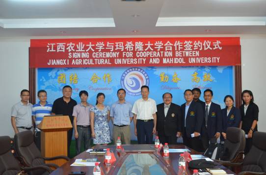 2014年6月25日,我院與泰國瑪希隆大學(xué)獸醫(yī)學(xué)院在江西省動物營養(yǎng)重點(diǎn)實驗室聯(lián)合舉行合作協(xié)議簽署儀式。副校長黃英金出席儀式并致辭。動科院院長瞿明仁、瑪希隆大學(xué)獸醫(yī)學(xué)院院長Parntep Ratanakorn分別代表雙方簽署合作協(xié)議。動科院副院長丁能水主持儀式,我校國際交流處、科技處等相關(guān)職能部門領(lǐng)導(dǎo)和學(xué)院負(fù)責(zé)人及師生代表參加了儀式簽署活動, 校長黃路生、副校長許斌華親切接見了Parntep Ratanakorn院長一行。