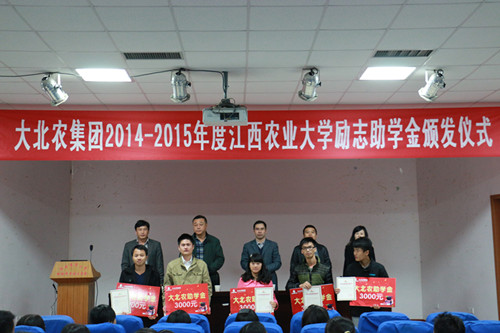 11月9日晚,大北農(nóng)集團(tuán)勵(lì)志助學(xué)金頒獎(jiǎng)儀式在院辦201報(bào)告廳成功舉行。大北農(nóng)集團(tuán)江西事業(yè)部預(yù)混料公司總經(jīng)理黃壘榮,江西區(qū)人力資源部經(jīng)理鄧璞江,院長(zhǎng)瞿明仁,院黨委書記陸偉,院黨委副書記楊秀江出席了頒獎(jiǎng)儀式。