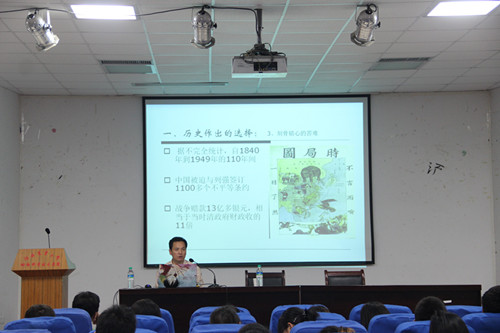 許校長主要從三個方面詮釋主題,分別為“歷史做出的選擇”,“現實引起的思考”及“青年應有的理想。首先從歐洲文化的歷史革命中切入,隨后涉及到我國舊文化的改革和新文化的崛起,讓現場的入黨積極分子及黨員意識到努力成為一個馬克思主義者是一種歷史做出的正確選擇。緊接著,他從現實方面講解,蘇聯東歐劇變和中華民族騰飛讓大家意識到馬克思主義思想的重要性,在現實中應當實事求是。最后,許校長鼓勵同學們用馬克思主義武裝自己,樹立樂觀向上的人生觀,價值觀,世界觀。