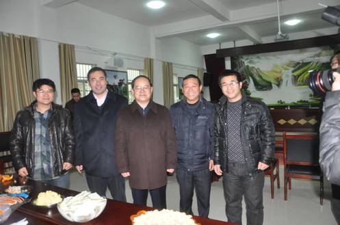 鹿心社省長與肉牛產學研基地成員合影(左起:楊發金,瞿明仁,鹿心社,楊食堂,楊建軍)