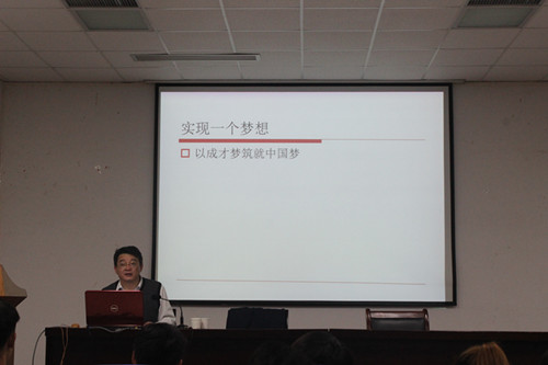 左處長首先從社會主義核心價值體系為切入點,深入細(xì)致的講解了社會主義核心價值觀的意義,對當(dāng)代大學(xué)生在價值觀的判斷和取向存在的困惑做出了解釋,配以生動具體的事例,并把晦澀難懂的觀點剖析的形象鮮明。隨后,他針對學(xué)生干部應(yīng)如何以實際行動去踐行社會主義核心價值觀展開討論并鼓勵大家要積極樹立三種意識:思想引領(lǐng)意識;敢于擔(dān)當(dāng)意識;志愿服務(wù)意識。對于學(xué)生干部這一特殊群體,還應(yīng)該具備以下兩種能力:凝聚同學(xué)能力和上下溝通的能力。最后,左處長希望學(xué)生干部努力奮斗,實現(xiàn)一個夢想---以成才夢鑄就中國夢。