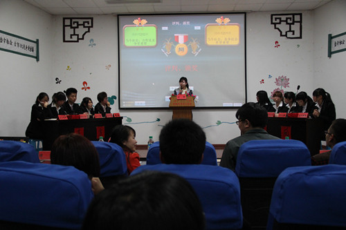 經過一番鏖戰,最終進入總決賽的正反雙方分別是動科1202班和動科1201班。本場辯論賽的正方觀點是“當今社會,競爭比合作重要”,反方的觀點是“當今社會,合作比競爭重要”。 開場立論陳詞環節,雙方犀利的言辭贏得了在場所有觀眾的熱烈掌聲。有問必答環節,更是爭鋒相對,你追我趕。在面授機宜環節中,兩方教練使出渾身解數為隊友支招,為賽事增色不少。而自由辯論、烽火再起環節,則使場上氣氛愈加激烈。在總結陳詞中雙方都發起最后的進攻。整場比賽精彩不斷,雙方的表現更是讓評委難以抉擇,經評委離席商討,最終動科1202班奪得冠軍,動科1201班黃冰冰,動科1202班的厲曼飛獲得本場辯論賽的“最佳辯手”。
