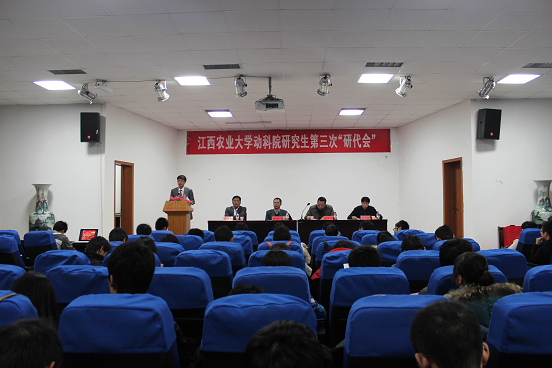 2012年12月14日,動物科技學院第三次研究生代表大會順利召開。研究生處黨總支書記熊紅華、動科院院長瞿明仁、黨委副書記楊秀江、副院長游金明出席大會。研究生處團總支、校研究生會及各兄弟學院研究生分會代表應邀出席。