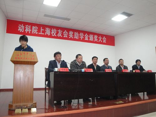 大會初,在管國泉老師宣布被資助的學生名單后,校友代表和院領導為他們頒發了證書和獎學金。在隨后的學生代表發言中,動科091班王小鵬用慷慨激昂的語言表達了自己的感激之情并表明了自己今后的努力目標。隨后我院黨委書記熊紅華發表了重要講話,他向獲獎同學提出殷切希望,并勉勵獲獎學生要能夠不斷提高自己的自身水平,完善自己。