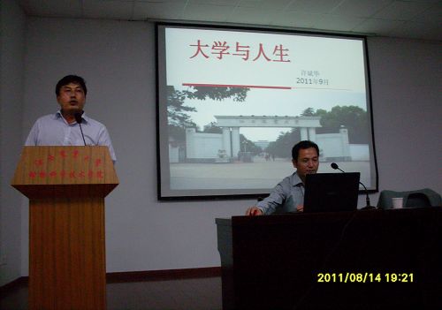 此次講座主要是面向大一新生,許斌華校助圍繞“什么是大學?”、“大學對人生有什么作用”、“什么是人生”、“我們應該怎樣成就人生”四個方面向我們詳細的介紹了現(xiàn)代大學的問世,大學的功能。用事實概述了引領人類文明進步中大學起的作用。就什么是人生,怎樣成就人生這方面,他用親身經(jīng)歷給我們總結出了“四個關系,四個不要”的經(jīng)典經(jīng)驗。最后,許斌華校助還引用了胡錦濤總書記對大學生講的一段話,對我院2011級新生們寄予期望,希望他們積極向上,笑對人生,同時做一個善良有智慧的人!