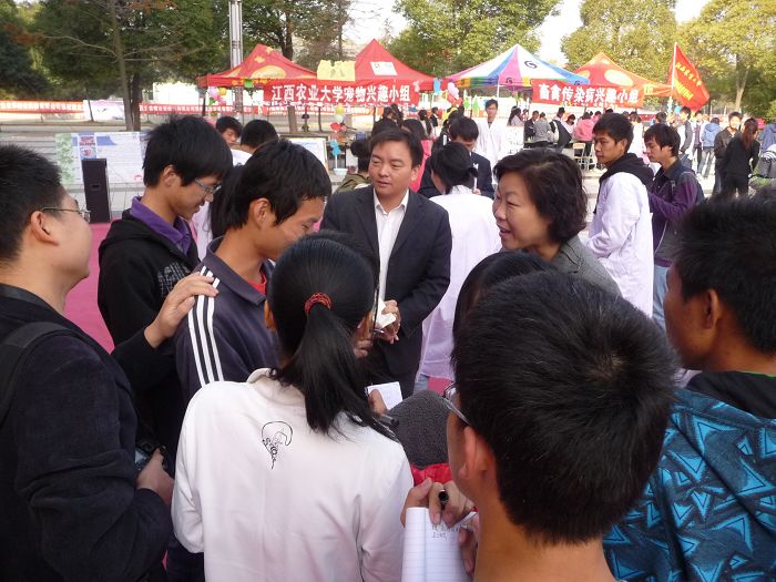 11月20日上午,我校北區文化廣場人山人海,熱鬧非凡。由我院團委主辦的首屆動物科技博覽會在此隆重舉行。蒞臨本屆博覽會的嘉賓有副校長潘曉華教授、校長助理胡春曉教授、校學工處處長左輝群,我院黨委副書記楊秀江、副院長游金明、大連三儀集團江西分公司經理章錦愛以及各興趣小組相關指導老師,開幕式由團委書記管國泉主持。