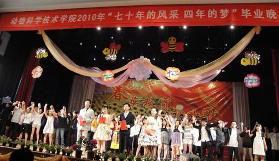 最后在深情的朗誦中,我們把大學(xué)四年的回憶、淚水和祝福濃縮成為一首歌《相親相愛(ài)一家人》,2010年動(dòng)科院送畢業(yè)生晚會(huì)也圓滿地畫上了句號(hào)。